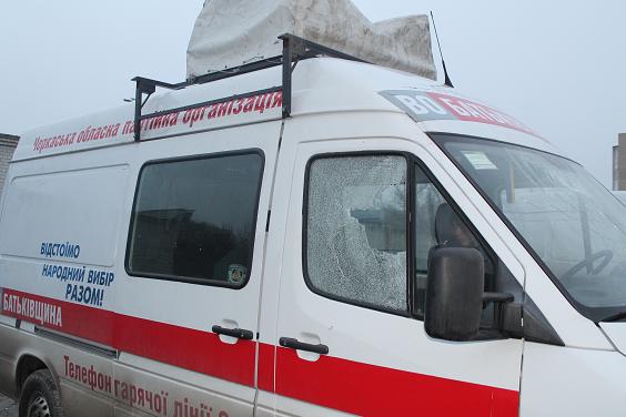 Невідомі побили вікна в агітавтобусі черкаської «Батьківщини». Бус перебував на автостоянці, що охороняється, у мікрорайоні «Митниця». Водій автобуса сьогодні виявив, що лобове та бокове скло автобуса розбито величезним камінцем та цеглиною. Про це пише сайт «Про головне».