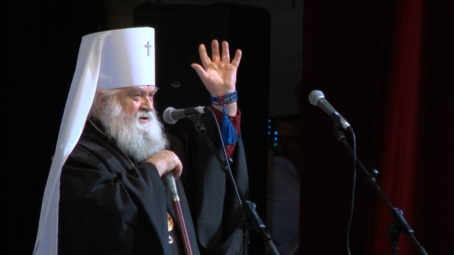 Митрополит Черкаський і Канівський Софроній після нагородження виступив перед черкащанами, що зібралися в палаці культури «Дружба народів» на концерт з нагоди 60-річчя області.