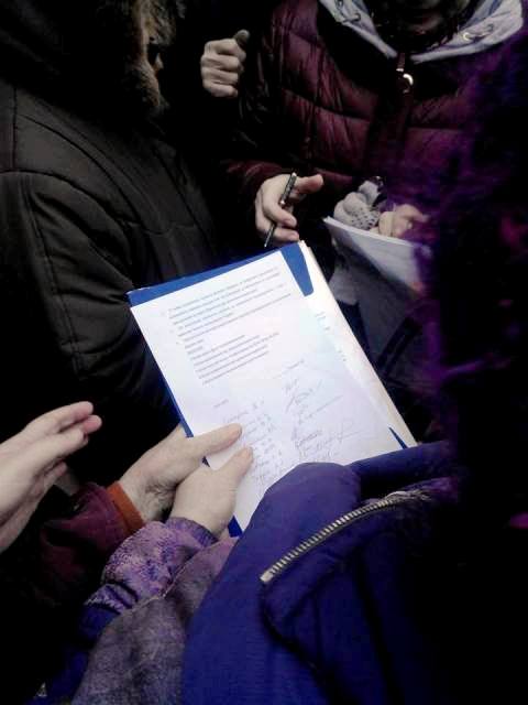 Наразі громадяни підписують колективне звернення до прокуратури міста. Представник прокуратури, який вийшов до мітингувальників, пообіцяв надати можливість очільнику обласної «Батьківщини» Анатолію Бондаренку та ще двом активістам передати звернення з вимогами прокурору.