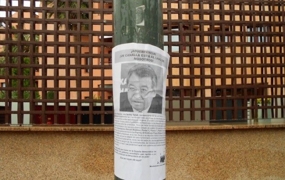 «УВАГА! НЕГІДНИК ПОРУЧ ІЗ НАМИ! Тут, у Марбельї, мешкає Сергій Тулуб – представник української влади, яка в Україні по-звірячому розганяє мирні демонстрації студентів та вчиняє бандитські напади на активістів. Український народ прагне, щоб Україна інтегрувалася до Європи, але влада ігнорує бажання власного народу і всіляко придушує протести. Зате українські можновладці на вкрадені в народу гроші вже давно покупляли маєтки в Європі. Зокрема у Марбельї апартаменти в елітному готельному комплексі Rincon Andaluz належать Сергію Тулубу, а одні з апартаментів La Pepina на El Embrujo Playa – його синові Борису та дружині Галині. У цього пана, як і в кожного українського можновладця, руки в крові українських борців за демократію і громадянські права. Його маєток куплено на крадені гроші — адже зарплати українського владця на це не вистачить. Найкраще, що ми з вами можемо зробити — це засвідчити цьому панові свою зневагу. Представникам авторитарної влади, що гнобить власний народ і нищить демократію в своїй країні, нема чого робити в демократичній Іспанії. Хай забирається геть!»