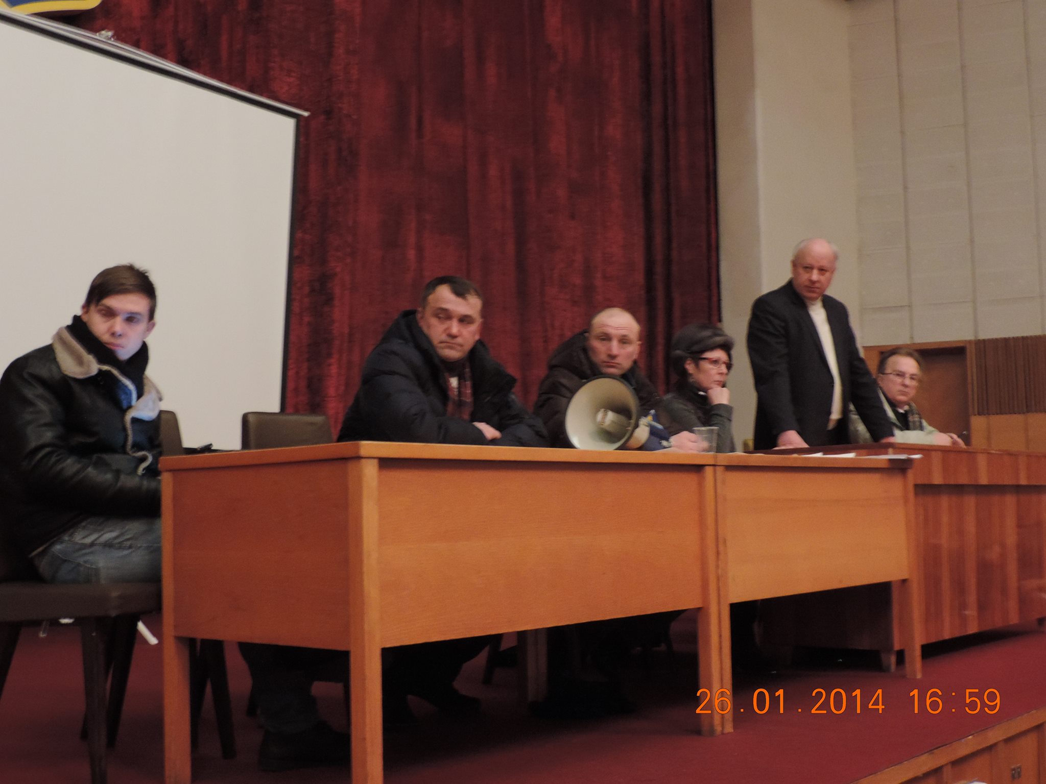 Сьогодні після переговорів з опозицією, голова обласної ради Валерій Черняек пішов відзвітувати перед представниками Народної Ради про результати. Представники громадськості почали йому ставити питання, зокрема, щодо недопущення депутатів на сесію облради, щодо дівчини Ольги Галушко, на яку хтось з вікна обласної влади скинув вазон. Втім ключовим питанням було те, чи подасть Валерій Черняк у відставку.