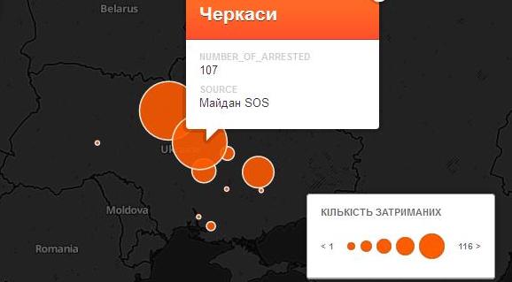 За останні два тижні в Черкасах затримали 107 осіб. Більше лише в Києві – 116. Такі дані оприлюднив сайт «Тексти.org.ua», який створив інтерактивну «карту репресій».