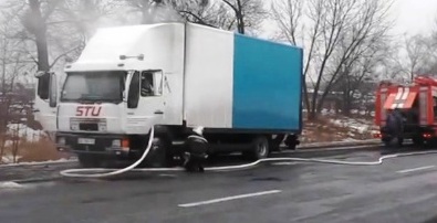 Виявивши дим, водій зупинив транспортний засіб, зателефонував за номером «101» та почав гасити пожежу за допомогою вогнегасника.
