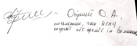 Озірний О.А., письменник, член НСПУ, лауреат літературної премії ім. Василя Симоненка;
