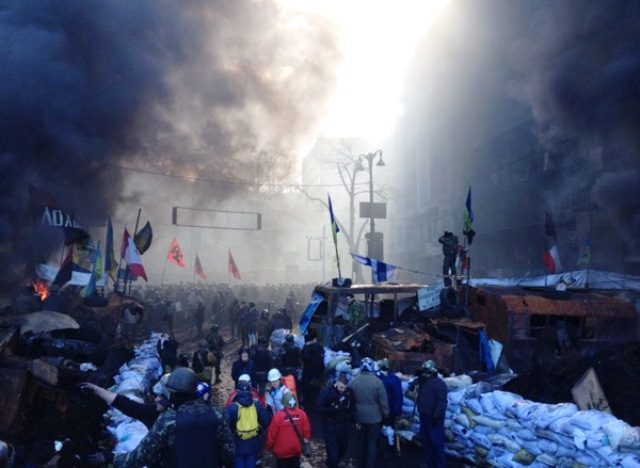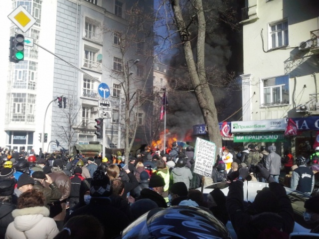 У Києві тривають масові заворушення в урядовому кварталі. Збір мітингувальників «для мирного наступу» розпочався о 8.30 на Майдані Незалежності.