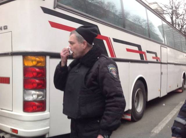 «Намагалася психологічно відмежуватися від цієї картинки, щоб не заводитися. І тут, просто перед ВР я закипіла: доблєсна «беркутня» і ВВшники розважалися тим, що підпалювали прапор сотні самооборони Майдану», – обурюється Ірина Геращенко. – «Під гигання своїх, бо я не знаю, хто в чиї костюми зараз рядиться, тітушки в ментовські чи навпаки – менти одягають «адідаски» і беруть бити. Я бігла до їхнього автобуса і кричала: «Віддайте прапор!» Вони сховалися в автобусі, показуючи мені звідти непристойні жести. А їх друзі-ментушки гиготіли навколо. Урядовий квартал – в облозі тих, хто і є головною опорою цієї влади – гопників і гопників в погонах».