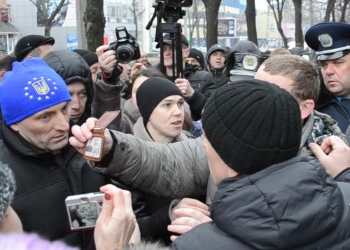 Голова обласної організації ВО «Батьківщина» Анатолій Бондаренко відібрав у міліціонера камеру.