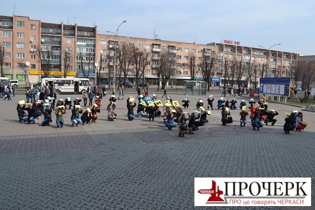 Сьогодні в Черкасах на площі ім. Тараса Шевченка (Театральній) відбувся флешмоб на підтримку територіальної цілісності України.