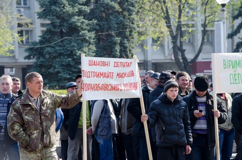 Перед вікнами обласного Будинку рад на вчорашній сесії стояли півсотні чорнобаївських мисливців з плакатами, закликаючи відновити справедливість. Житель Чорнобая, представник ТОВ МРГ «Чорнобаївське» Валерій Коваленко у коментарі «Прочерку» пояснює, що люди налаштовані просити обласних депутатів скасувати своє рішення від 2011 року щодо мисливських угідь.