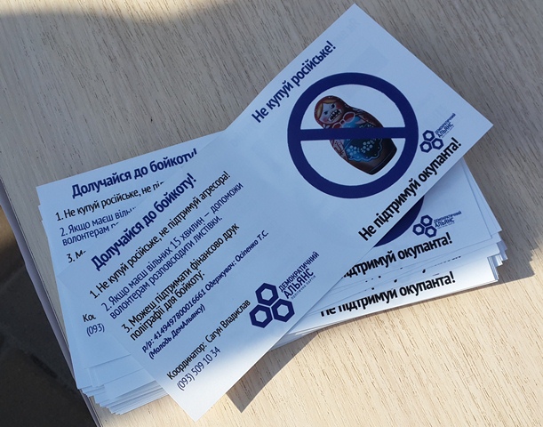 Цією акцією «демальянсівці» хотіли донести до черкащан, що, купуючи товари російських виробників, вкладаючи гроші в російські банки, заправляючи свої автомобілі на російських заправних станціях, вони, по суті, підтримують країну-окупанта.