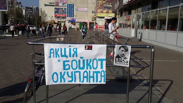 – Ми хочемо, щоб люди це зрозуміли, звернули увагу на те, які товари вони купують, тим самим не дати економіці Росії зростати. Росіяни бойкотують наші товари. Ми, в свою чергу, будемо бойкотувати їхні, – зазначив у коментарі «Прочерку» виконавець ролі «Путлера», представник партії «Демократичний Альянс» Дмитро Зборовський.
