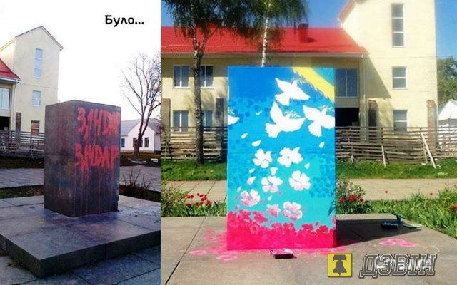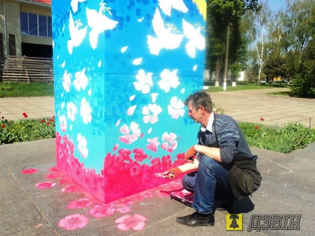Жашківський художник Тарас Крамаренко розмалював постамент на центральній площі міста, на якому до 21 лютого стояв пам’ятник Леніну.