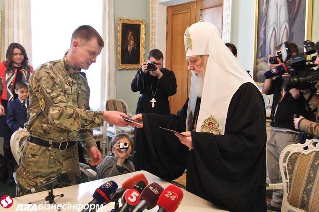 11 березня у приміщенні Синодальної зали Київської Патріархії Святійший Патріарх Київський і всієї Руси-України Філарет провів зустріч з бійцями, які проявили героїзм в обороні України у війні на Донбасі та нагородив їх медалями "За жертовність і любов до України". Це бійці батальйону Національної гвардії імені генерала Кульчицького та Добровольчого українського корпусу "Правий сектор", які заради зустрічі зі Святійшим Патріархом прибули з передової.
