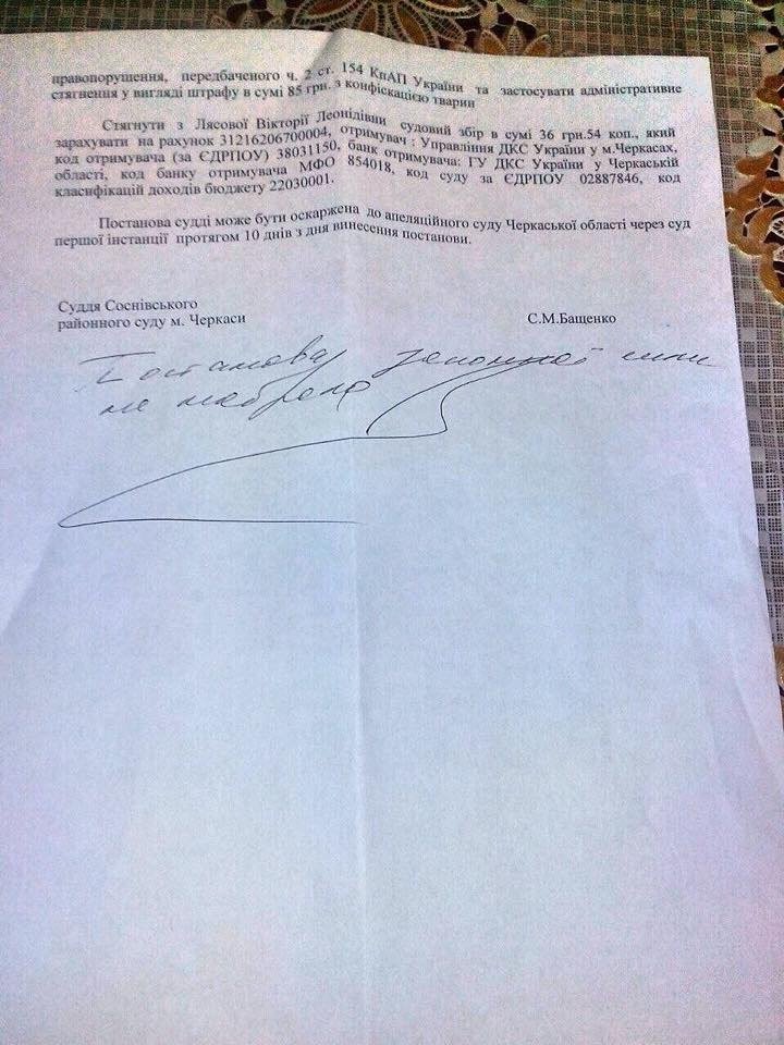 Як інформує сайт v4asno.com, суд також постановив оштрафувати власницю нелегального розплідника на 85 гривень.