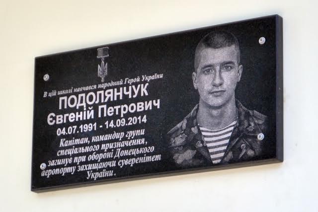 Меморіальну дошку капітану Євгенію Подолянчуку, який героїчно загинув 14 вересня 2014 року, захищаючи Донецький аеропорт, урочисто відкрили сьогодні в Черкаській спеціалізованій школі №3, яку він закінчив у 2008 році.
