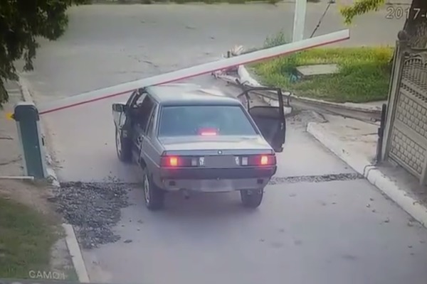 А от пасажиру, який сидів на передньому сидінні, вибратися з автівки вдалося. Він героїчно підняв шлагбаум та визволив транспорт, після чого водій спокійно поїхав далі з відкритими дверцятами.
