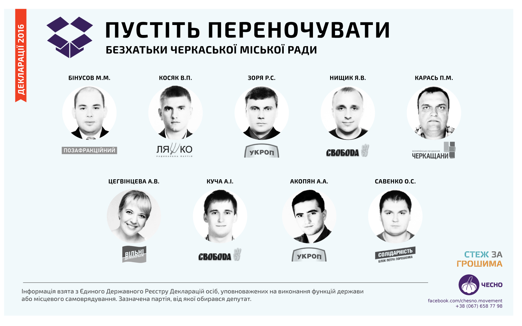 Ще один безхатько, депутат від фракції “ВО Черкащини” Павло Карась, не вказав житло умисно, бо приховує місце свого проживання, так як вважає, що ці данні повинні бути приватними.