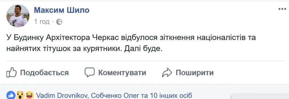 За повідомленням депутата Черкаської міськради Максима Шила, у Будинку Архітектора відбулось зіткнення.