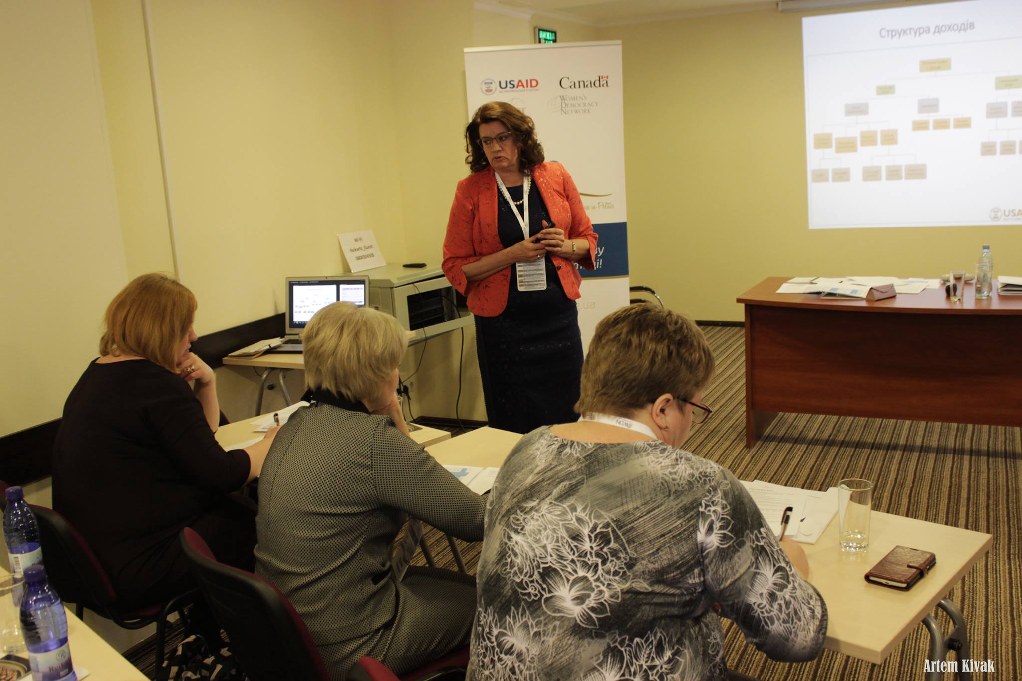 Спікерами конференції були Любов Майборода, голова ГО "УЖДМ"; Тетяна Харенко - заступник директора департаменту фінансової політики Черкаської міської ради, Валентина Боченкова - голова відокремленого підрозділу УЖДМ Черкаської області, депутат Золотоніської міськради.