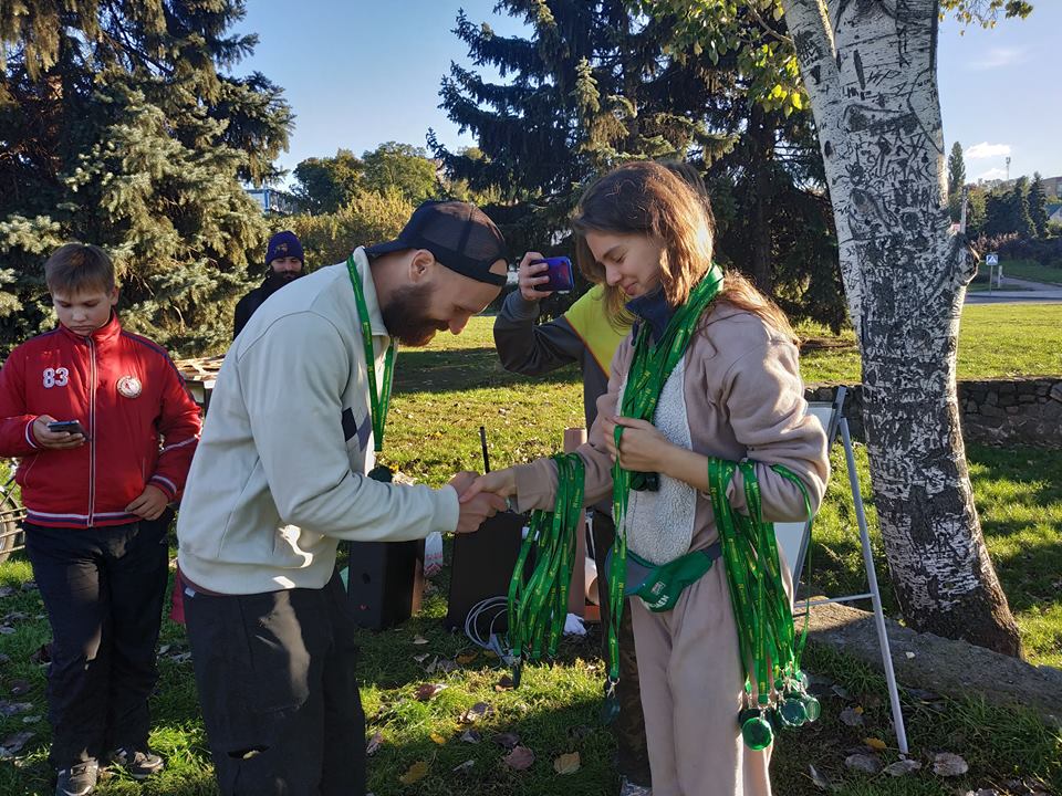 Для учасників забігу організатори підготували спеціальні медалі у вигляді кришечок з-під йогурту та переробленого пластику із написом «Біжи зелено».