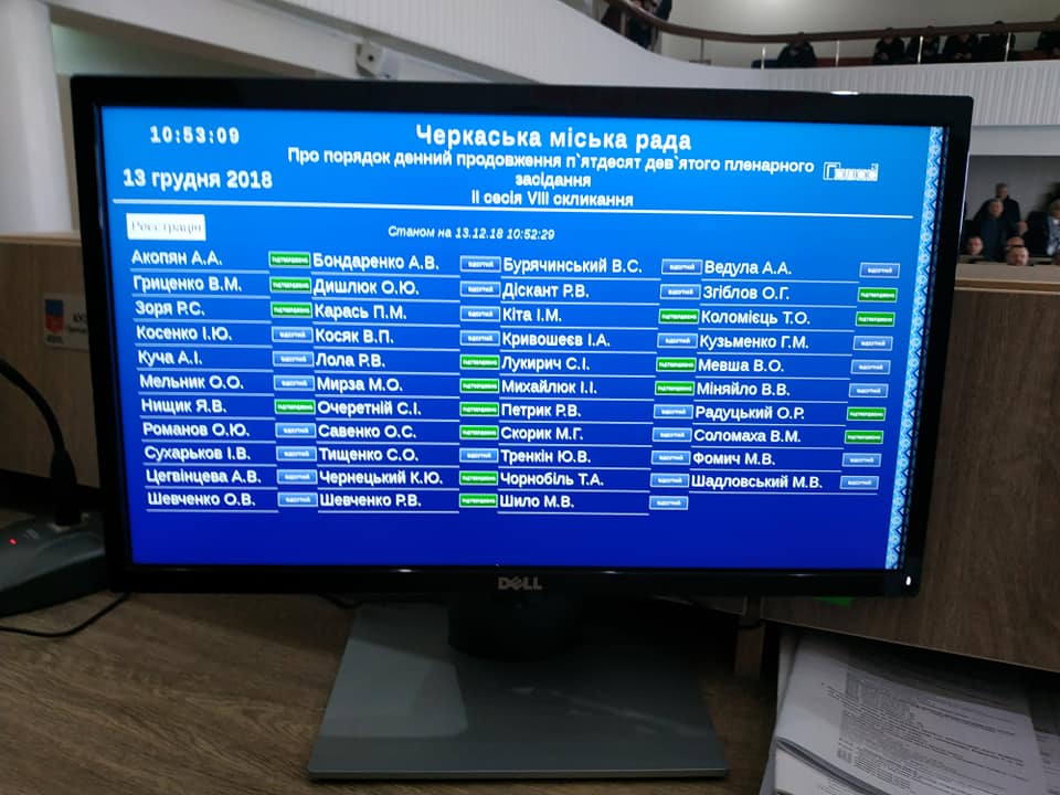 Сьогодні мало відбутися продовження роботи п’ятдесят дев’ятого пленарного засідання другої сесії Черкаської міської ради (запланованого на 6 грудня 2018 року). Але чергова сесія в Черкасах зривається.