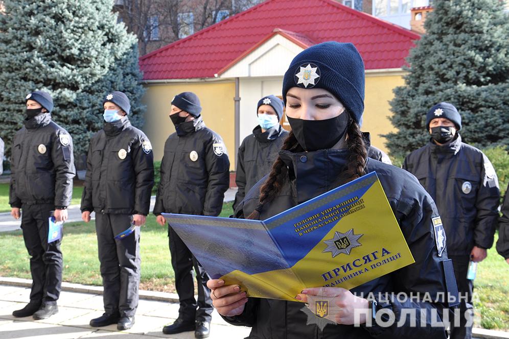 На території Черкаського обласного главку поліції новобранці, які пройшли конкурсні відбори, та вперше прийняті на службу до лав Національної поліції України, склали Присягу на вірність Українському народові.