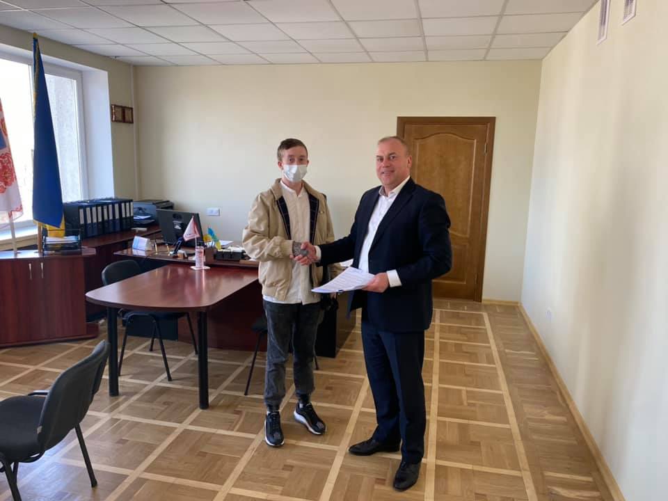 Директор департаменту соціальної політики Євгеній Данченко особисто привітав новоспеченого власника житла з придбанням і побажав Олексію успішного старту в доросле життя.
