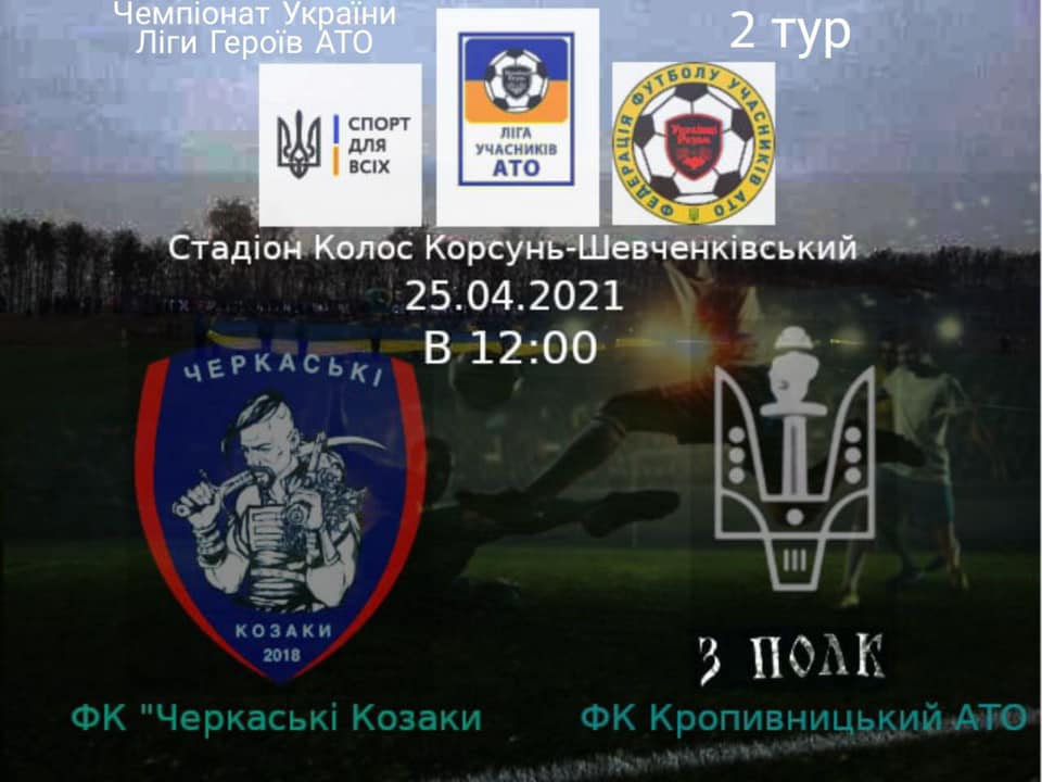 На цих вихідних 25.04.2021 року відбудеться гра 2 туру Чемпіонату України Ліги Героїв АТО на стадіоні «Колос» Корсунь-Шевченківський між командами ФК «Черкаські Козаки» та ФК «Кропивницький АТО»
