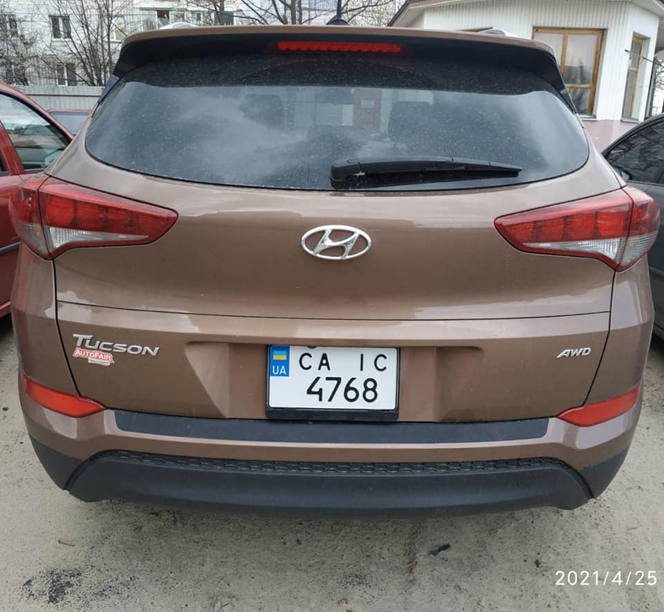 Колір авта бронзово-коричневий. На задній правій арці подряпина. Під написом Tucson на багажнику червона наклейка Auto Fair.