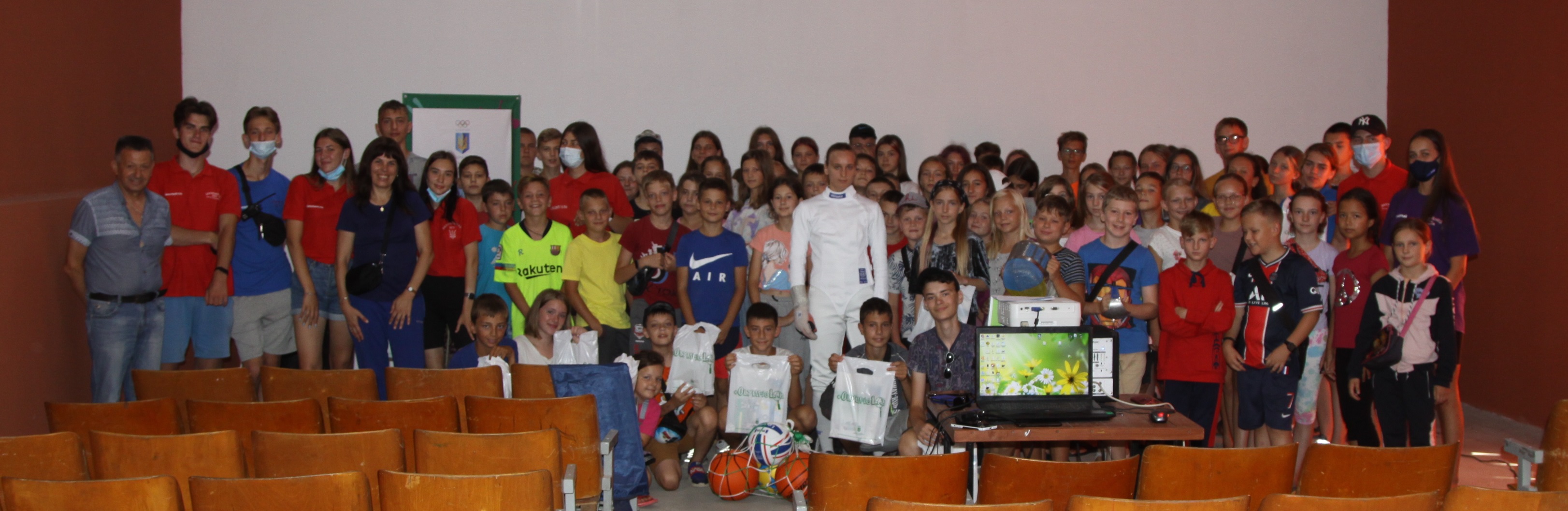 Поспілкуватися з юними відпочивальниками та познайомити їх зі своїм видом спорту завітала майстер спорту України, член збірної України, учасниця чемпіонату Європи з фехтування Валерія Гнідашева. Вона розповіла про види фехтувальної зброї, про поле бою, стійку і прийоми, правила змагань тощо. Спортсменка показала, які існують випади та пересування під час бою. Гостя ознайомила учнів зі своїм спеціальним захисним костюмом та екіпіровкою, яку змогли примірити й учасники зустрічі.