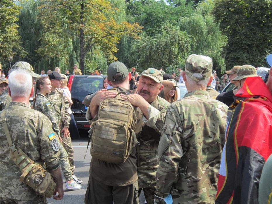 Звісно, початок ходи затягнувся. Та потім, коли емоції вщухли, присутніх розбили на так звані „коробки” (усього їх було 63), і ми рушили від парку Шевченка бульваром Шевченка до Хрещатика, а далі – до Майдану Незалежності. Кажуть, що цією ходою пройшли до 30 тисяч ветеранів-захисників і волонтерів. Повірю в це, бо коли ми вже їхали додому, хода ще тривала.
