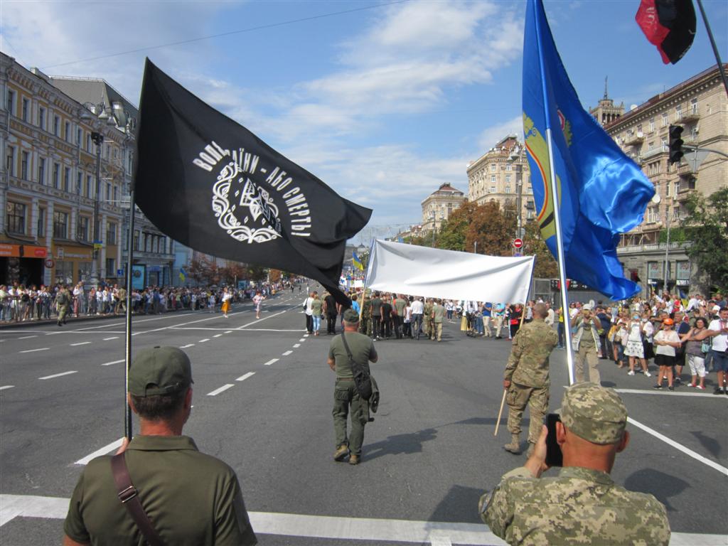 А в цей час у центрі Києва ще йшли і йшли колони тих, хто залишився на війні живим, для кого День Незалежності держави, за яку вони проливали кров, не є приводом для танців і веселих пісеньок. Для них це день спогадів, побратимства, вшанування полеглих і віри у краще майбутнє України.