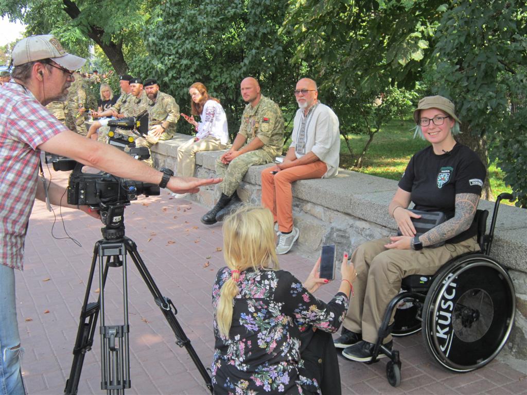 Інтерв’ю журналістам дає Яна Зінкевич – українська медик-доброволець, під час війни на сході України командирка медичного батальйону „Госпітальєри”, що з часу створення врятував понад 2500 поранених українських воїнів та цивільних осіб з передової