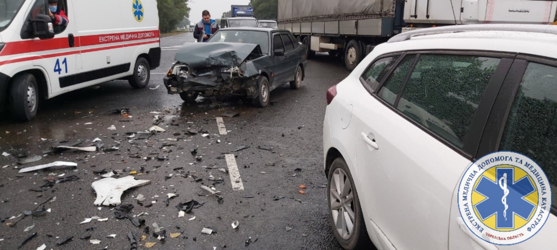 Поки медики надавали допомогу травмованим, там же не розминулися ще три автомобілі. Допомоги медиків потребував ще один пацієнт, тож туди прибула ще одна бригада екстренки.