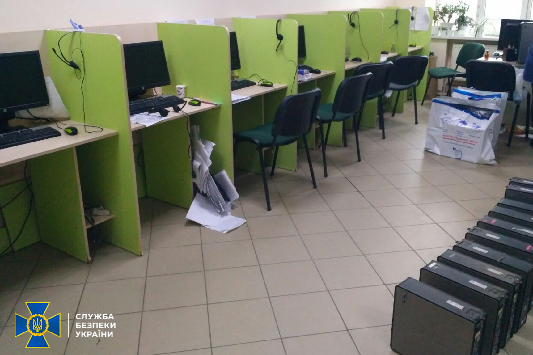 У ході обшуків в офісних приміщеннях кол-центрів правоохоронці вилучили: -понад 120 комп’ютерів з програмним забезпеченням російського виробництва; -документи, які свідчать про співпрацю нелегальної структури з країною-агресором; -чорну бухгалтерію; -інструкції з обслуговування клієнтів, методів конспірації на випадок перевірок, технічну документацію з графіками роботи працівників центру.