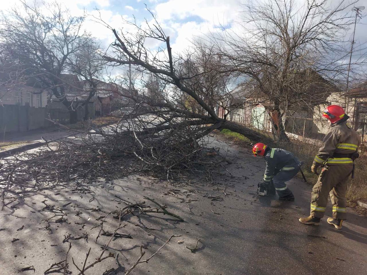 Перший випадок стався у місті Черкаси на вулиці Максима Залізняка. Бійці ДСНС прибрали дерево, що впало на проїжджу частину дороги та заважало руху автомобільного транспорту.