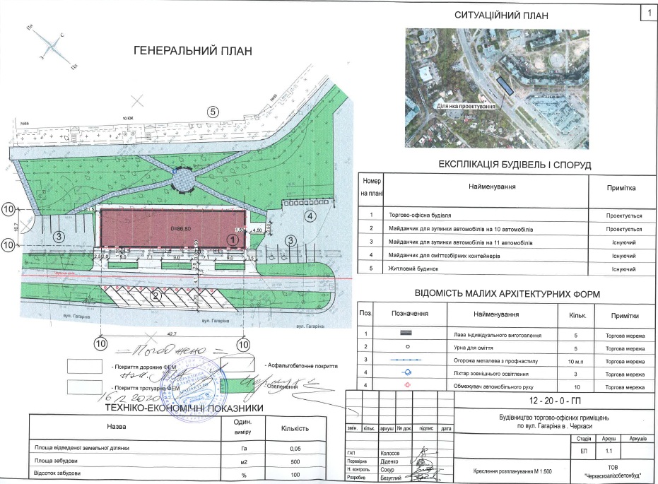ТОВ «Алекс-Партнер-2020» отримало дозвіл на будівництво і містобудівні умови у грудні 2020 року. Там планують звести на площі в 500 м. кв двоповерховий офісно-торгівельний центр. На першому поверсі розмістять магазини, а на другому офіси.
