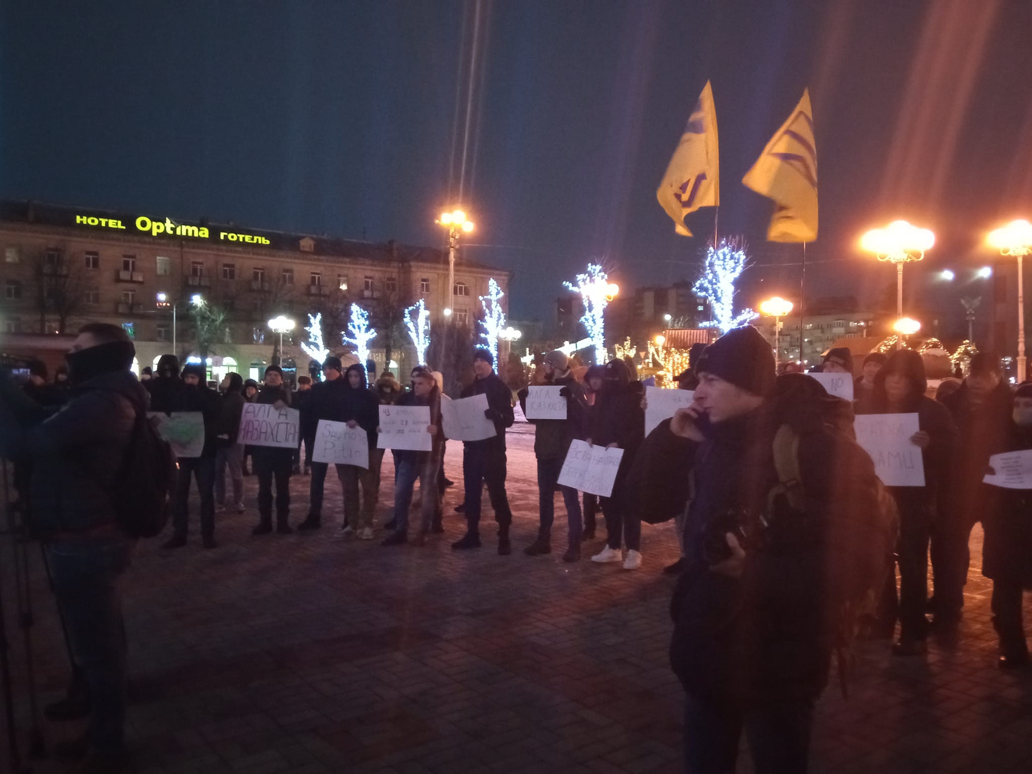 До півсотні людей у Черкасах вийшли на акцію 10 січня, повідомляє «Прочерк». Учасники акції закликали не йти на будь-які компроміси із Росією. Також черкащани підтримали Казахстан: у руках учасники тримали плакати із написами «Алга Казахстан» («Слава Казахстану»), "Say no to Putin", "Україна з вами", "Де Росія - там і смерть" тощо.
